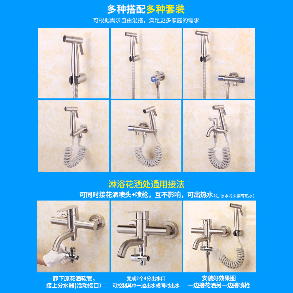 304 stainless steel spray gun woman cleaner toilet spray gun suit washing ass shower head booster water gun flush shower nozzle