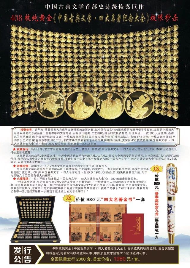 Four major Chinese classical literature celebrates the gold gold book of commemorative gold chapter
