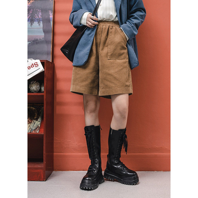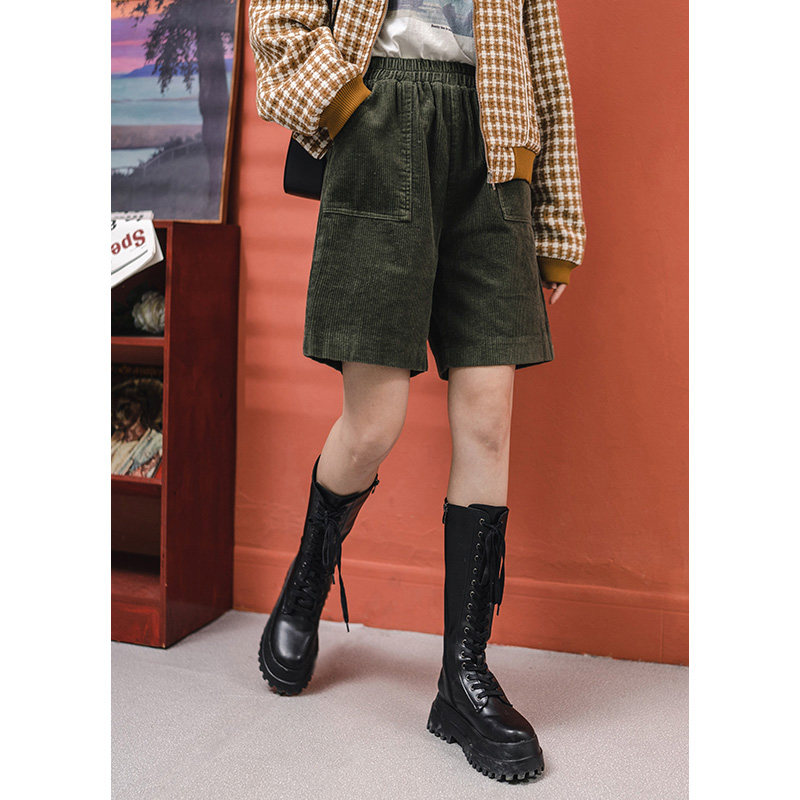 Light Core Suede High Waist Wide Leg 50% Pants Women Fall Retro Elastic Waist Loose Lenty 100 Hitch Suede Straight Drum Shorts