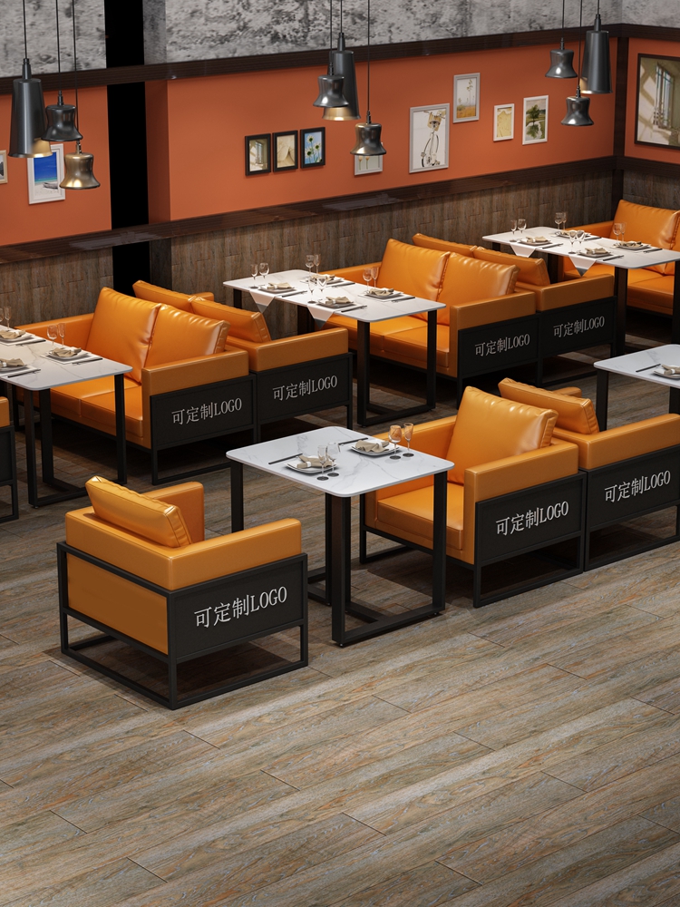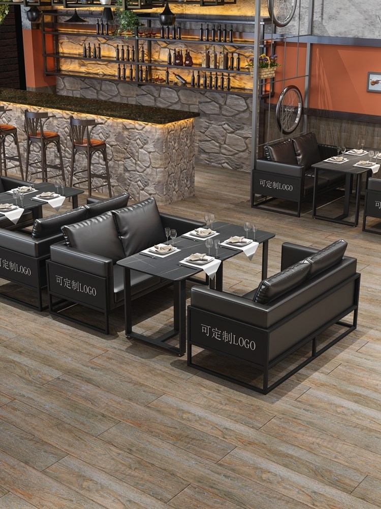 Dining room Small tavern in single double table and table combined industrial wind iron art sofa table and chairs bar clear bar sofa seat