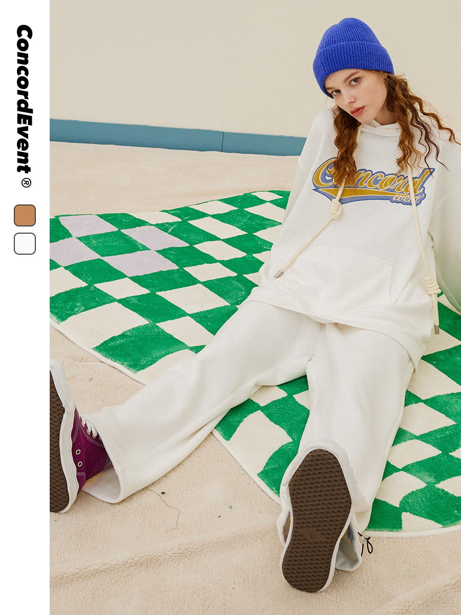 CONCORDEVENT 2022 winter plus velvet thick knitted pants men's tide brand casual pants straight loose wide legs