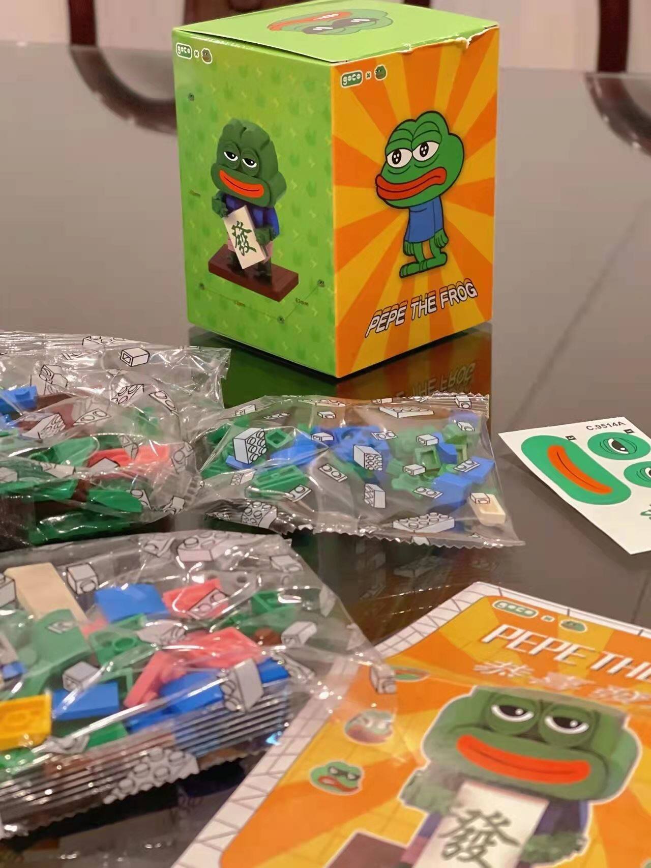 Cool music tide playing sad frog lucky frog children's desktop spelling and inserting building blocks pepe expression package series children's puzzle spelling