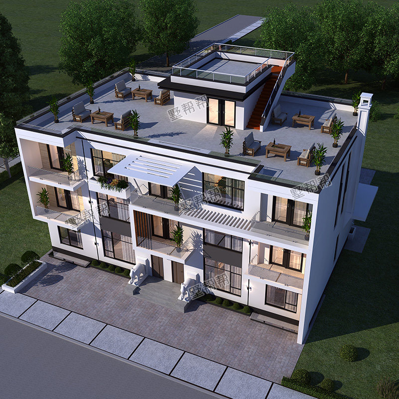 Villa helps three - story modern villa with a 20 - meter rural self - built house in two - dimensional construction