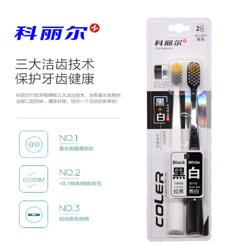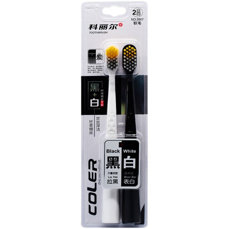 Coryl 3907 men and women couples black and white clean fashion toothbrush charcoal silk deep clean slender filament soft bristles