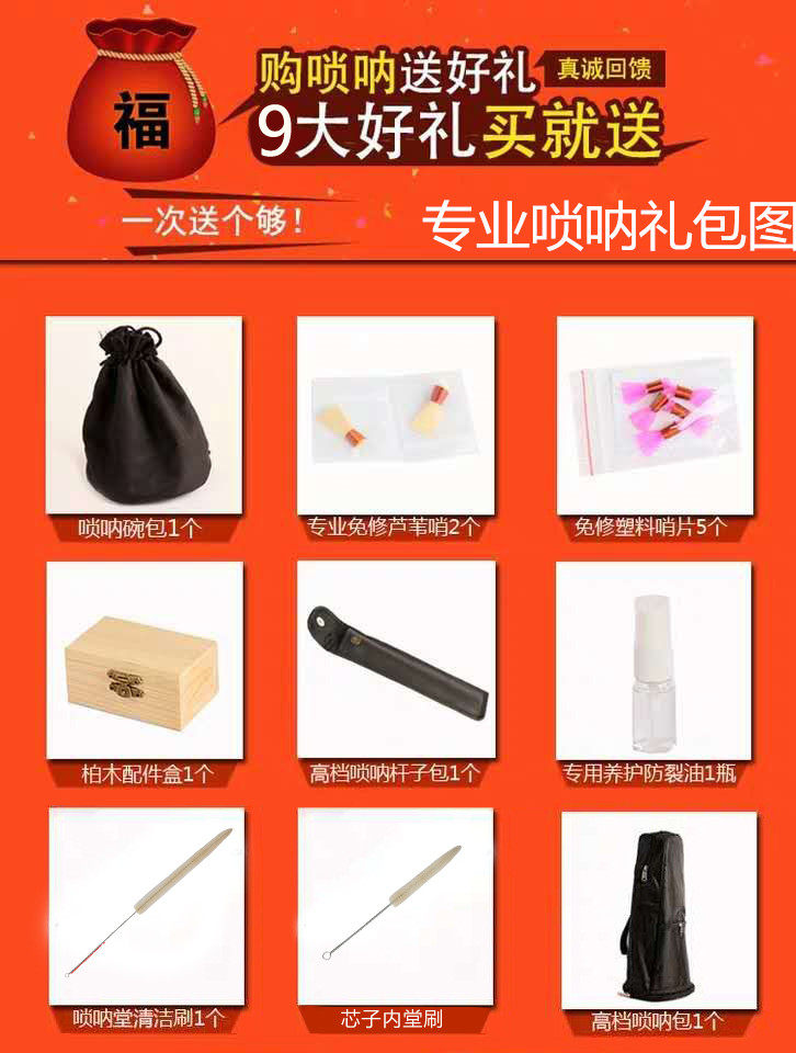Suona Musical Instrument D Tune Full Set Red Wood Uki Professional Core Beginners Folk Horn Blowing Playing Black Sandalwood Lock Cry