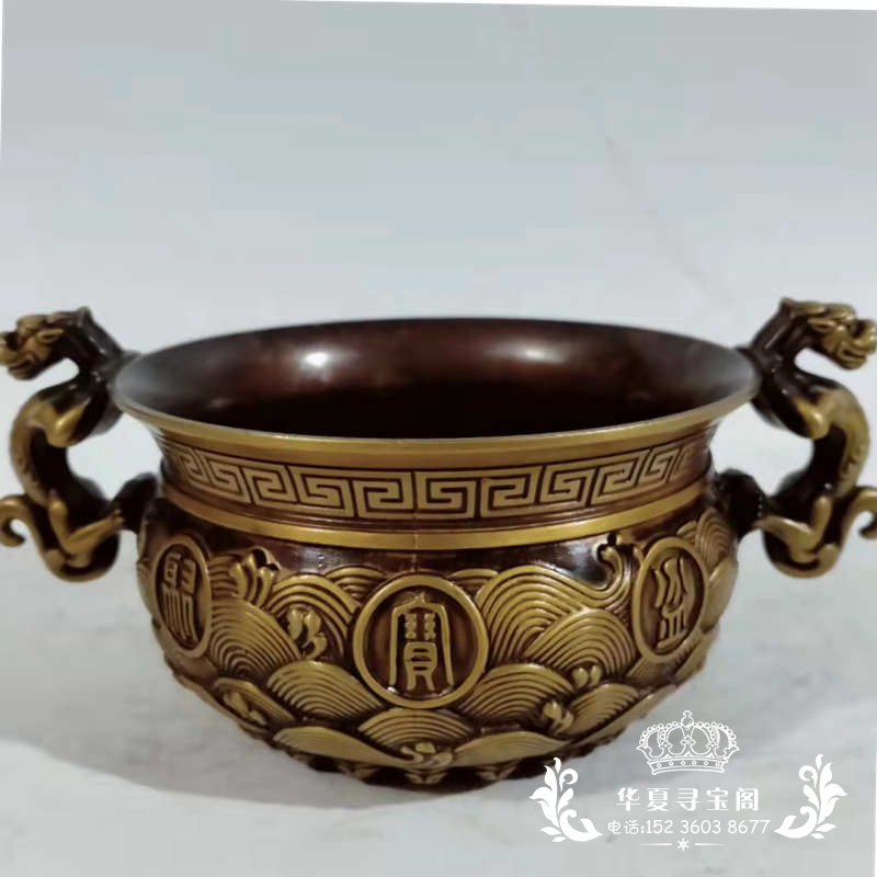 New antique bronze antique seal cornucopia film and television props brass dry long year double ear dragon incense burner ornaments