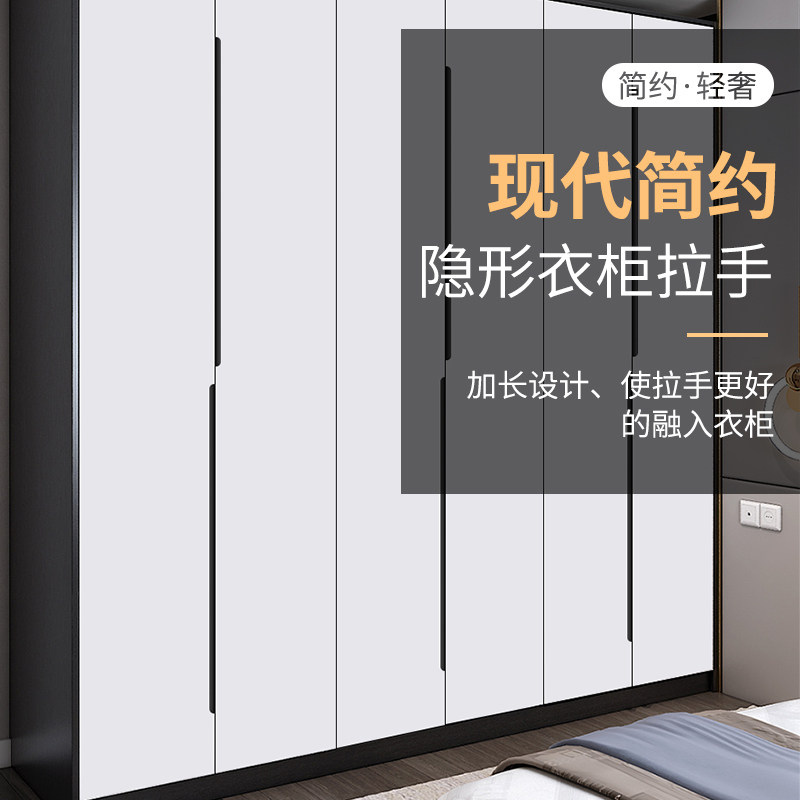 Cabinet door handle wardrobe drawer long handle cabinet whole cabinet door embedded invisible aluminum alloy whole body one door to the top