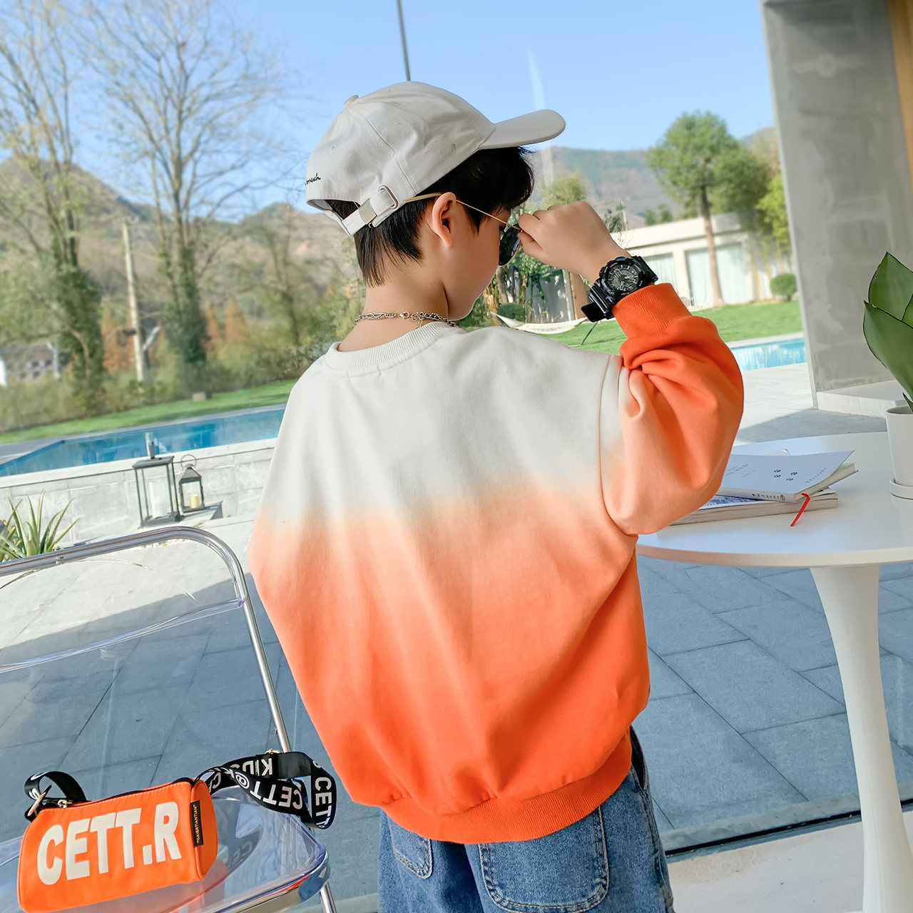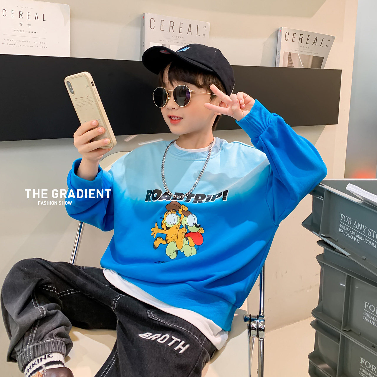 (Garfeline IP) Left West Boy Gradual Layers Necropolis 2022 New Children's Undershirt Blouses Spring And Autumn