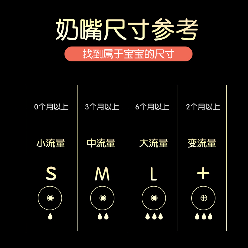 Round hole S pacifier (applicable 0-6 months) round hole M number pacifier (applicable 2-6 months) round hole L pacifier (applicable for more than 6 months) (new) cross-hole pacifier (applicable