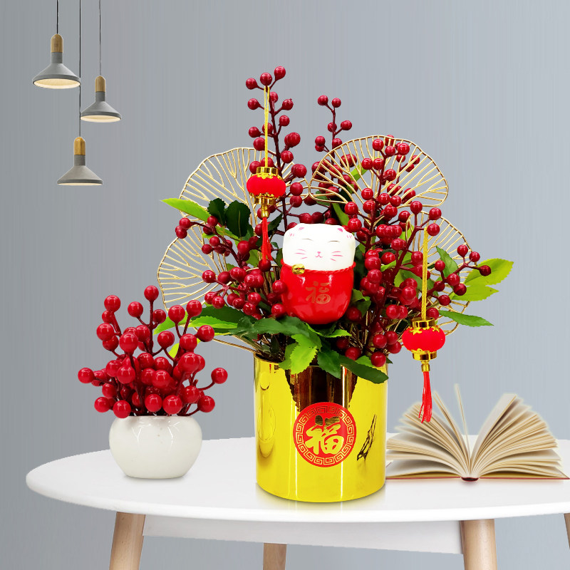 Year of Lunar New Year Flower emulation Auspicious Fruits Fu Barrels of Finance Fruit Chinese style Wind Living Room Corporate Front Desk Decorative New Year Home Furnishing