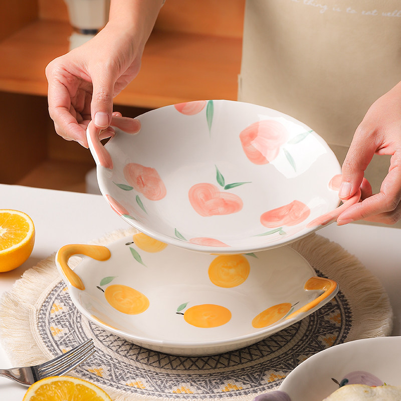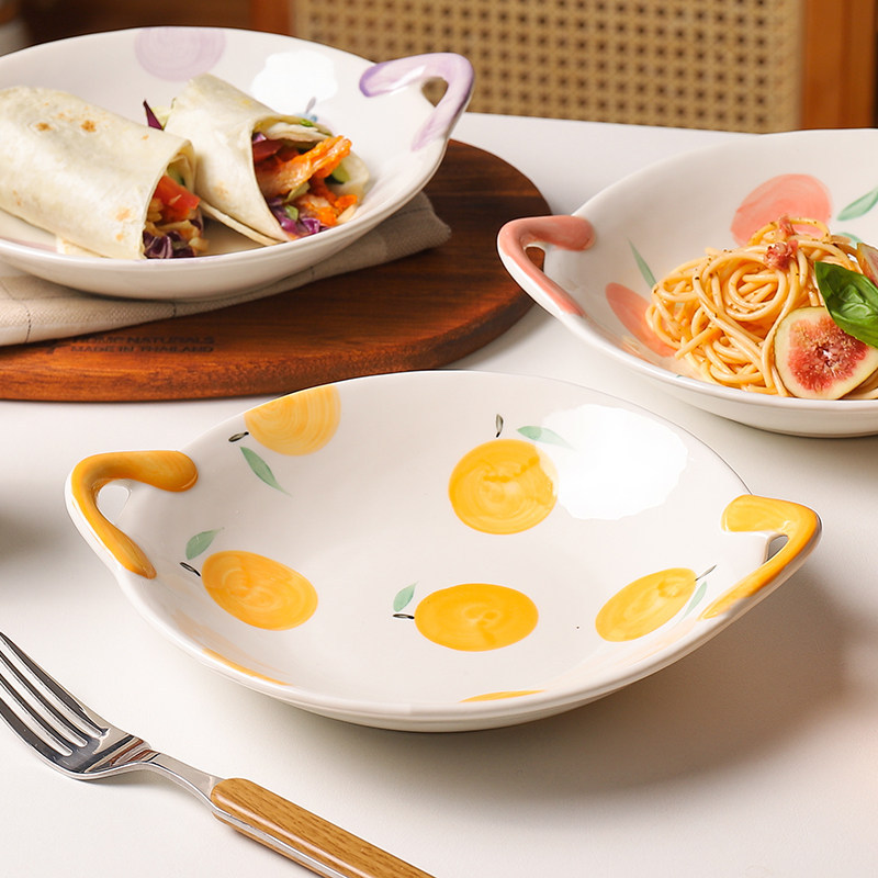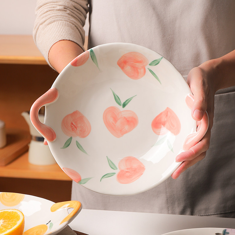 Double-ear disc ceramic particularly good-looking plates Ziins Wind Creative Fruit Pan Shalapan Breakfast Tray 7 Inch Tray