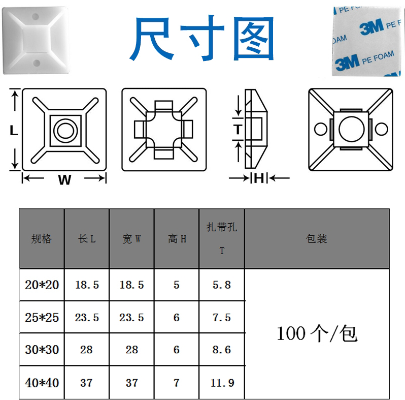 Super sticky force suction cup positioning sheet self-adhesive zahled wire with fixed seat 3M glue imported double-sided adhesive 25 * 25 wire buckle