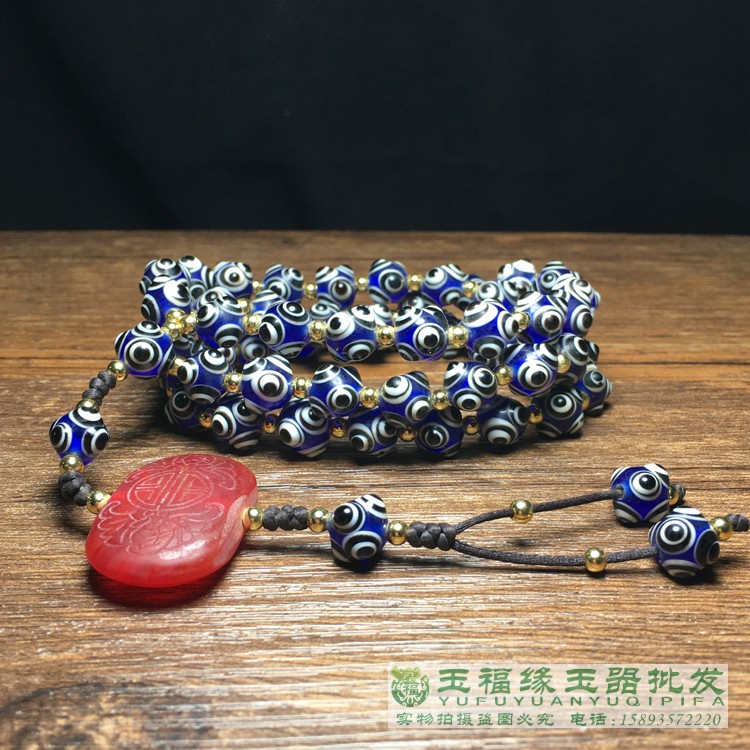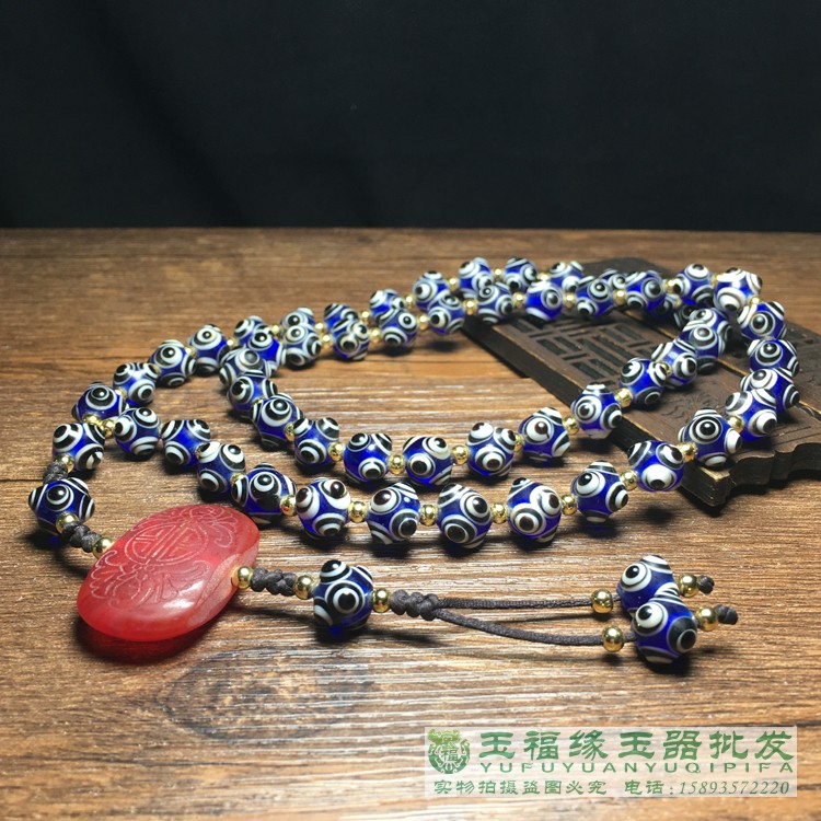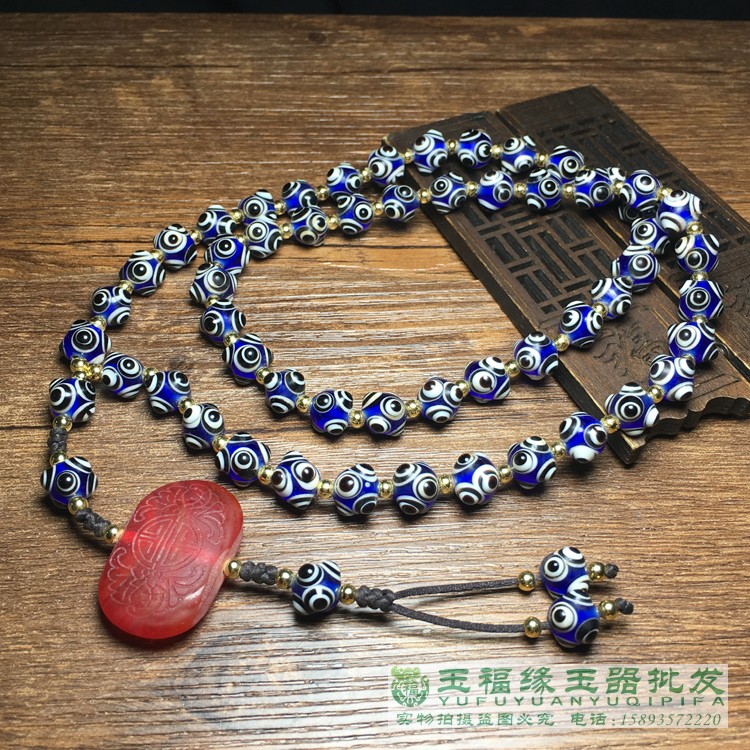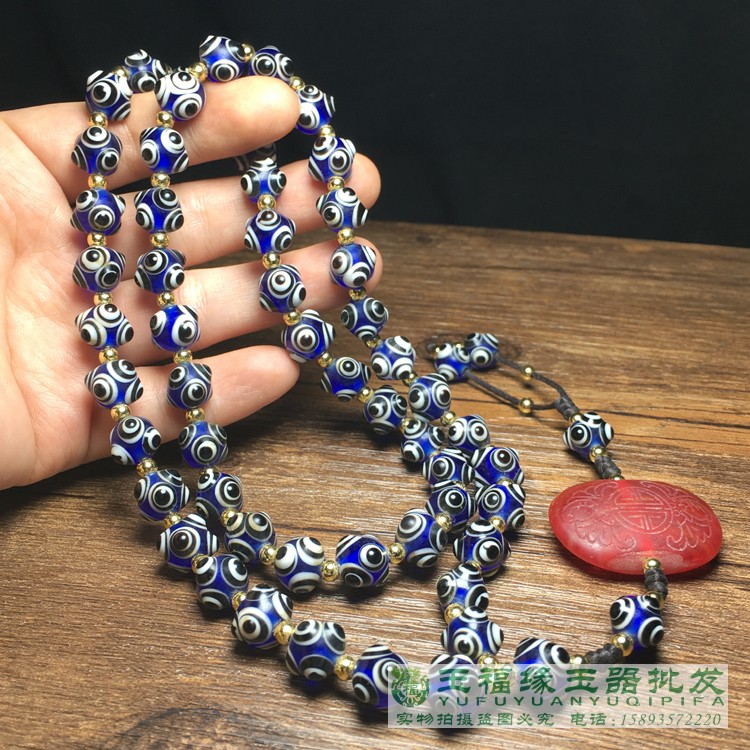 Antique Miscellaneous Old Glass Beads Multi Prism Long Necklace Back Cloud Dragonfly Eye Blue Glass Dazzling Pendant Necklace