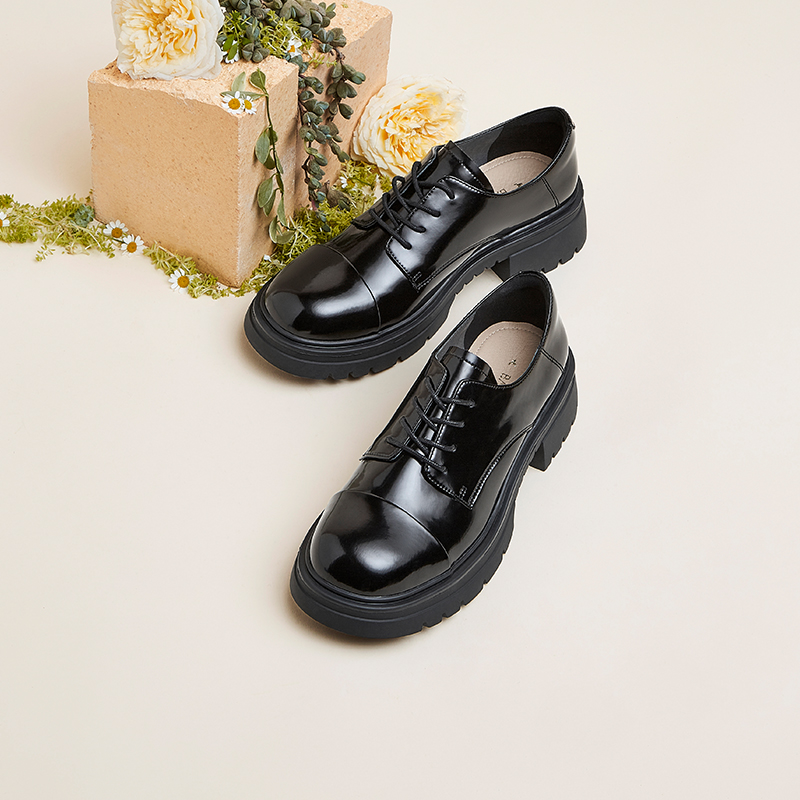 Bestto 2022 spring new shopping mall with the same round head thick heel thick bottom Oxford shoes women's casual leather shoes TFW28AM2