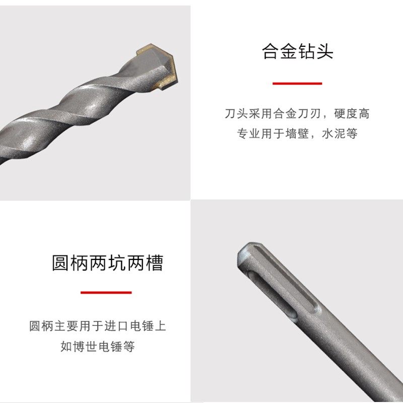 Impact drill bit round handle Two-pit two-pit two-pit two-pit two-caving 6-square-square-square-square-square-electric hammer four-pit-cross electric hammer