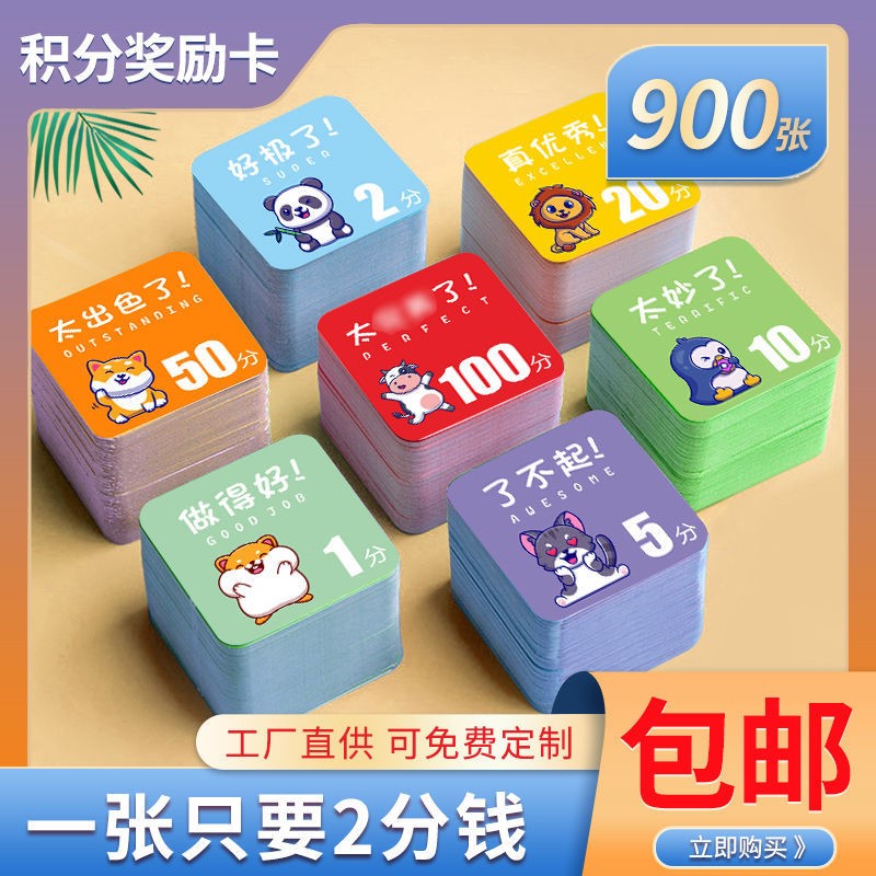 Cartoon reward card custom points card primary school children kindergarten parents teachers encourage card customization
