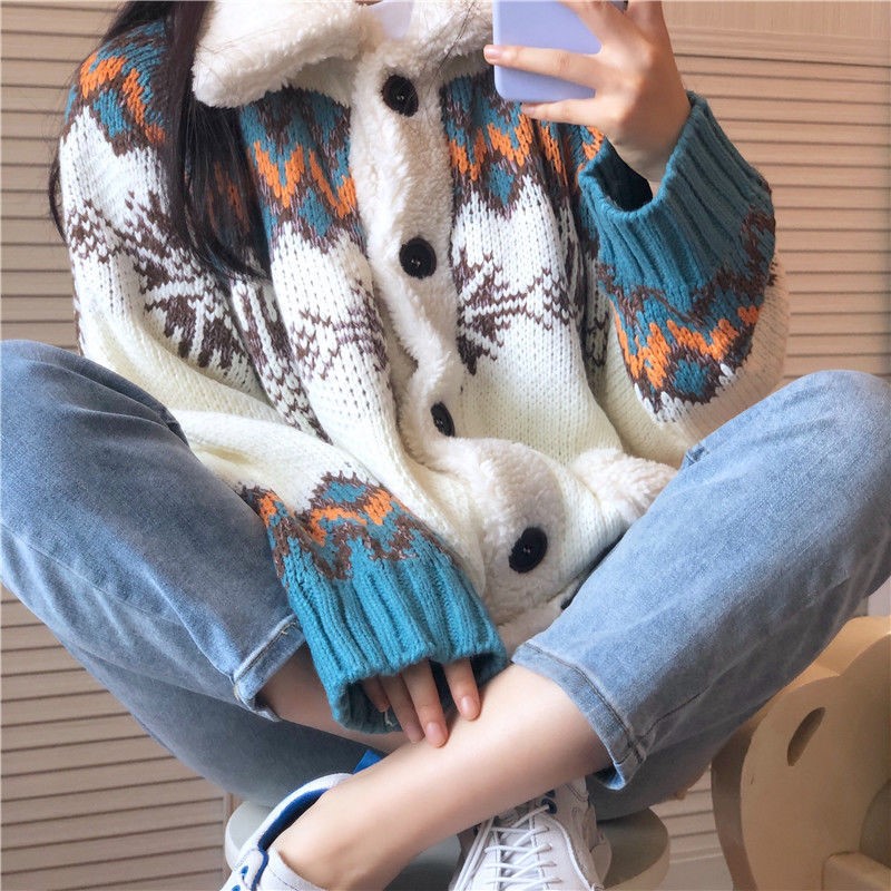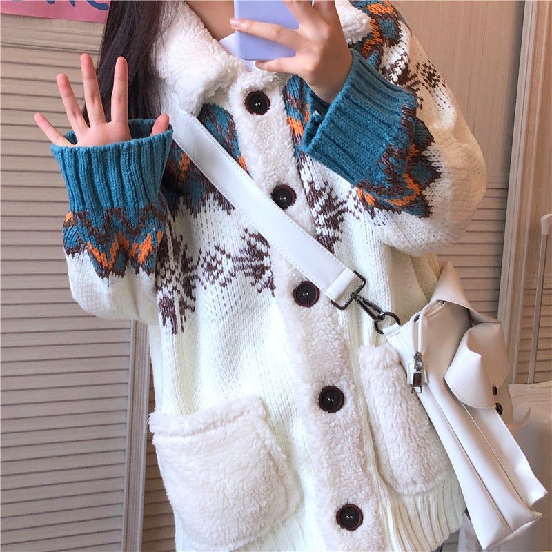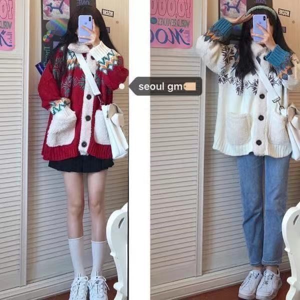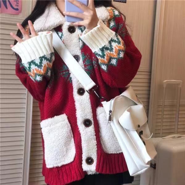 Autumn and winter cool girl temperament Western style small man fried street Christmas red lamb wool thick coat skirt two-piece suit