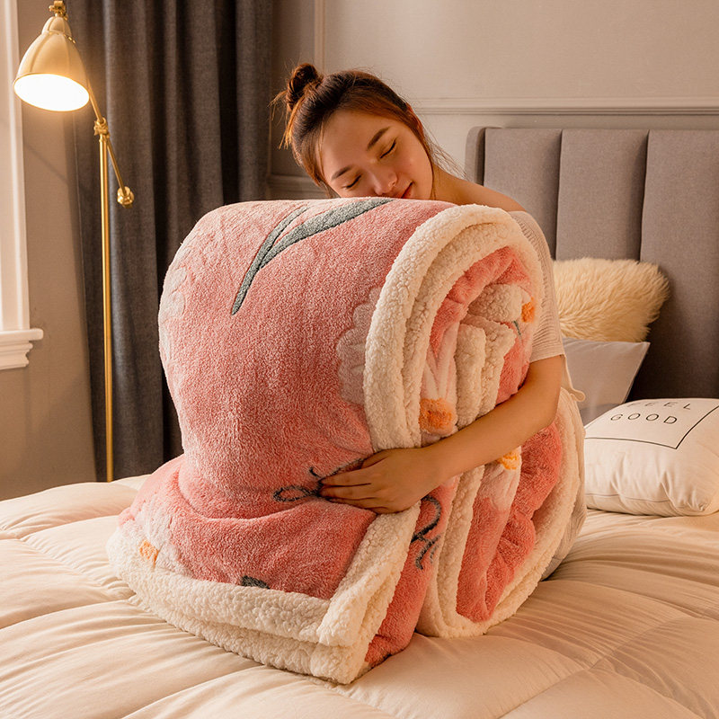 Coral velvet double blanket winter sleeping lamb blanket nap office student bedpaving sheets