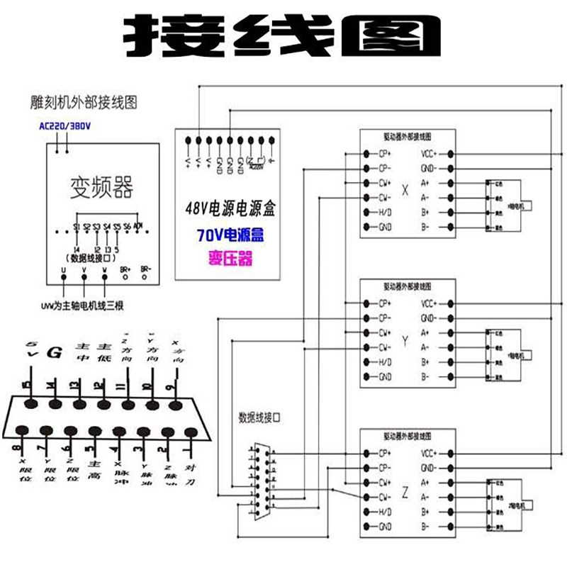 Engraving machine control card three-axis Weihongka motion motherboard Vika 3g carved CNC system accessories full set