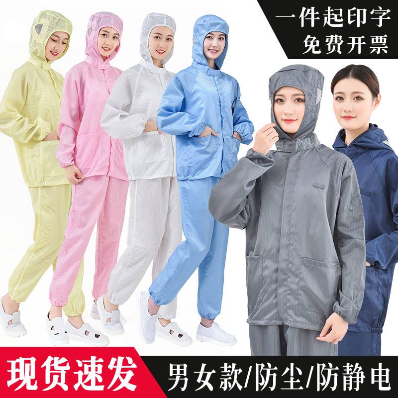 Dust-free clothes Two-style Lianhood Blue and white protective clothing Short static clothes men and women working clothes food factory dust-proof clothing