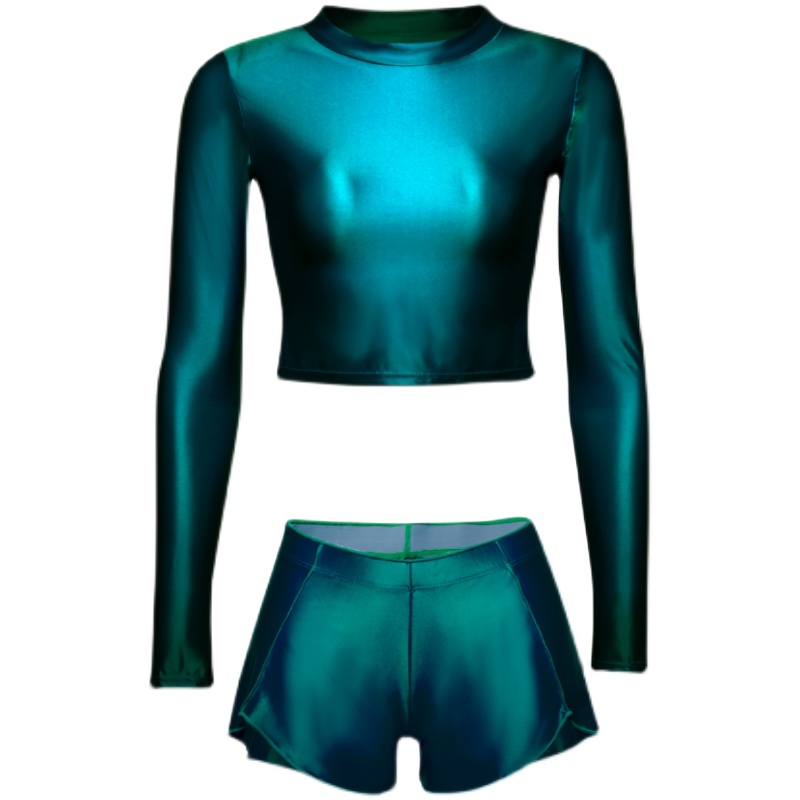 Fitness clothes long sleeves tight fit sports suit glossy oil bright high bounce round collar training suit running gear basketball