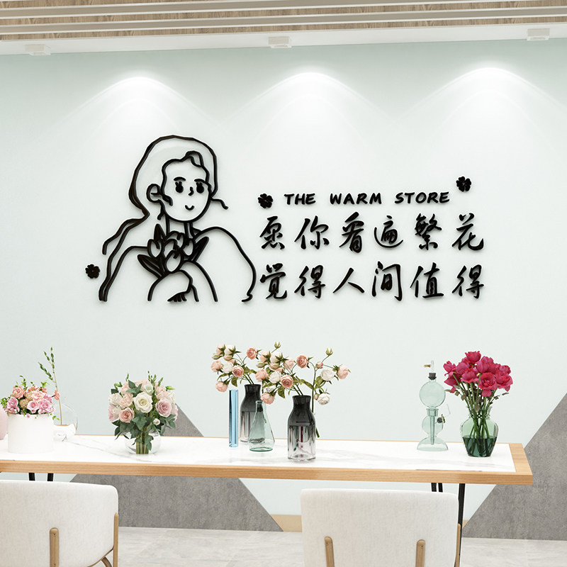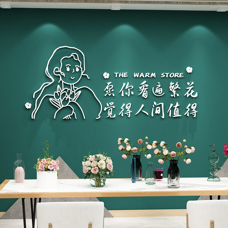 Net red flower shop decoration repair supplies layout wedding window glass door advertising creative background wall sticker painting