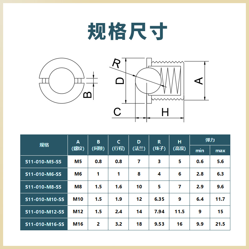 Stainless steel flange type spring ball head plunger steel ball tight flange type positioning bead beading screw FBPJSM10