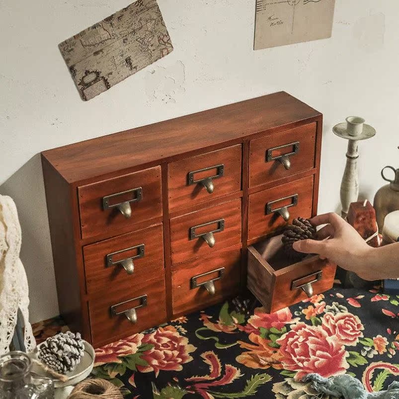 Desktop Wood Nine-Palace Lattice Containing Case Small Drawer Multilayer Jewelry Retro Seal Solid Wood Sub lockers Sub-style