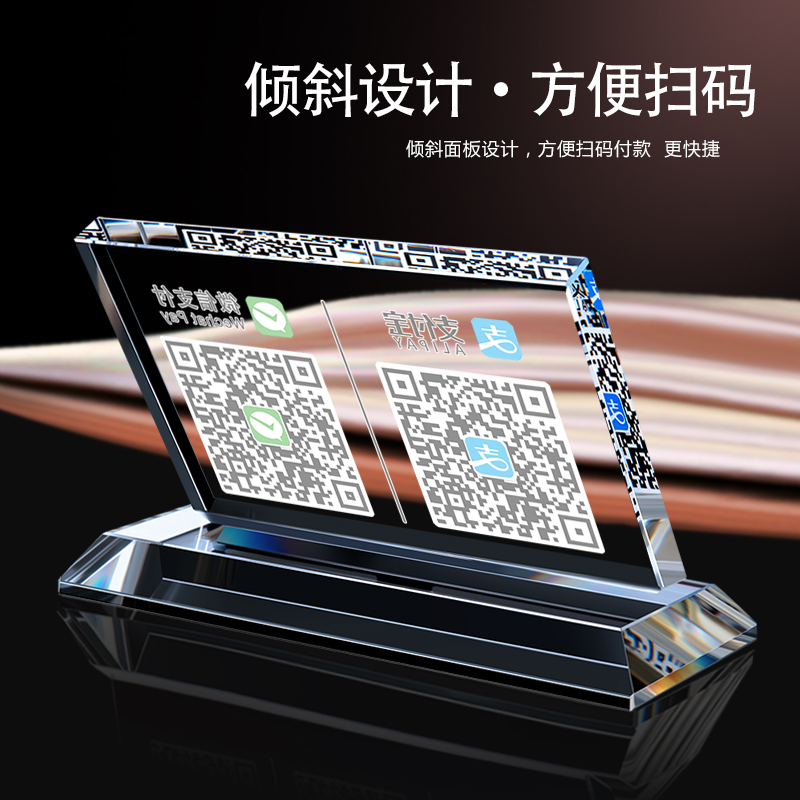 Two-dimensional code collection code display card payment cards stand-up, micro-credit collection two-dimensional code collection of money code card customized Alipay merchants collection of silver counter cards pendulum table crystal personality creative upscale table cards