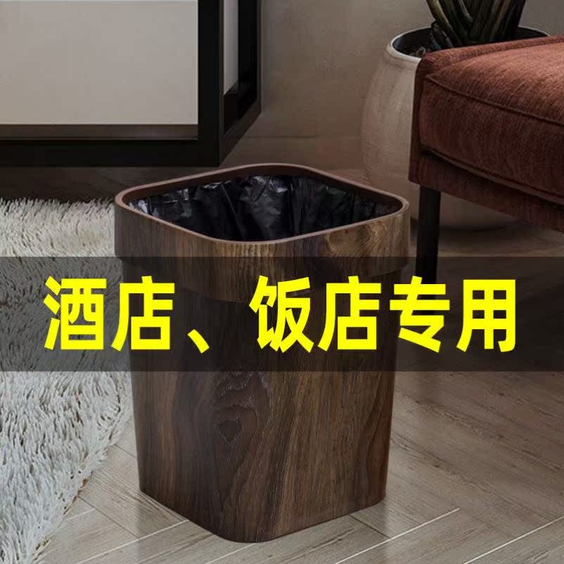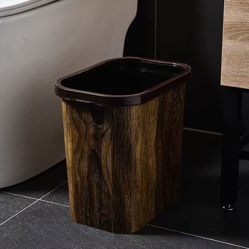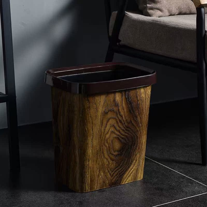 Retro-imitation wooden trash bin household creative living room kitchen cosmetic basket plastic pressure ring