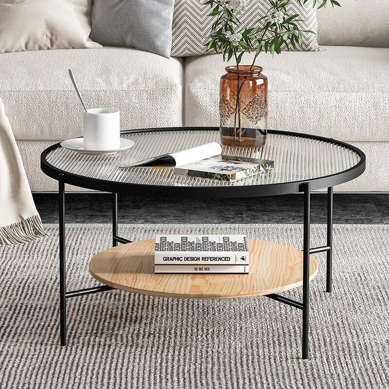 Nordic living room round glass coffee table simple modern solid wood small apartment tempered glass small coffee table home bedroom