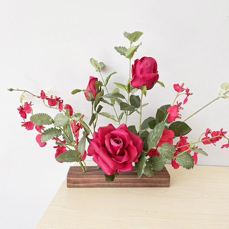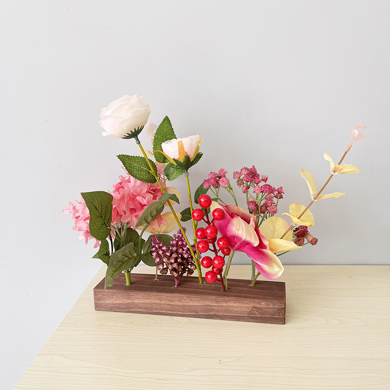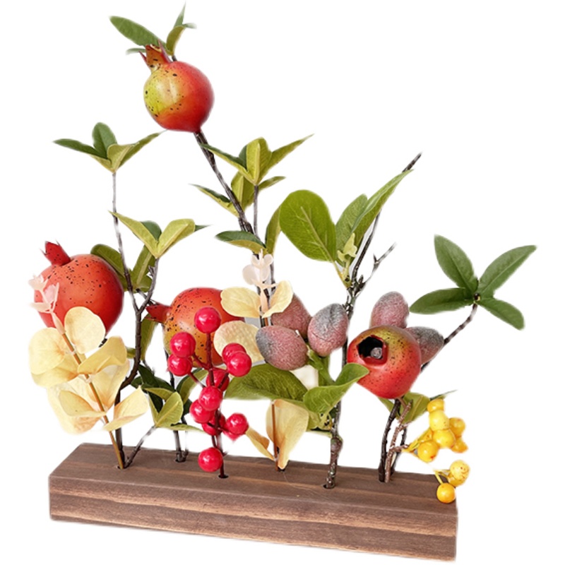 Retro fake flower emulation flower bouquet furnishing living room Xuanguan DIY New Year Spring Festival decorations Green-planted small potted wood pendulum pieces