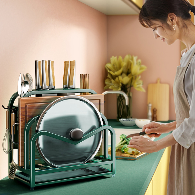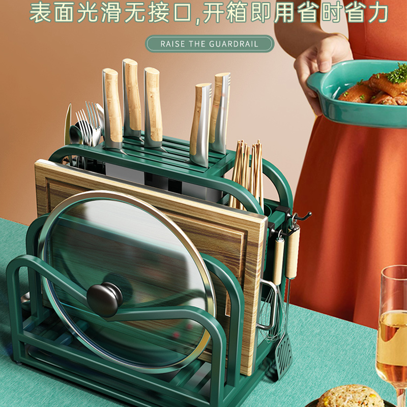 Kitchen shelving ink green knife holder table face stainless steel kitchen knife chopping block case plate integrated storage containing layer shelf
