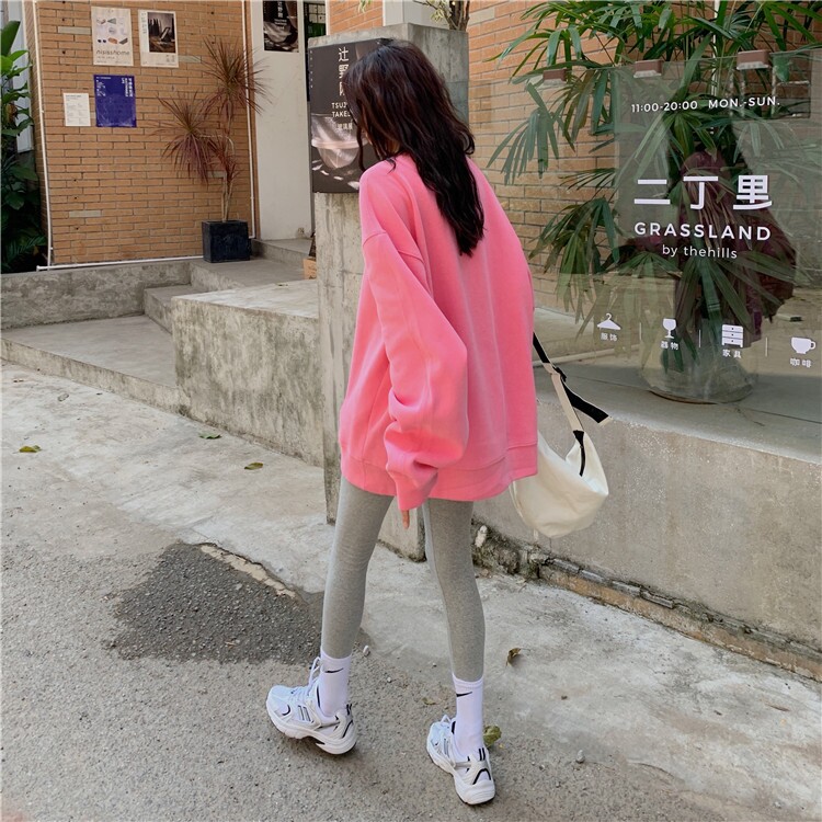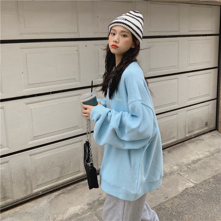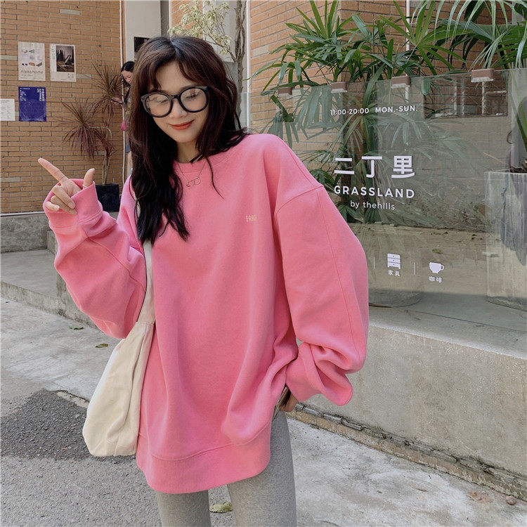 Japan SLY THOM simple letter solid color loose round neck rice wool plus velvet casual mid-length sweater women