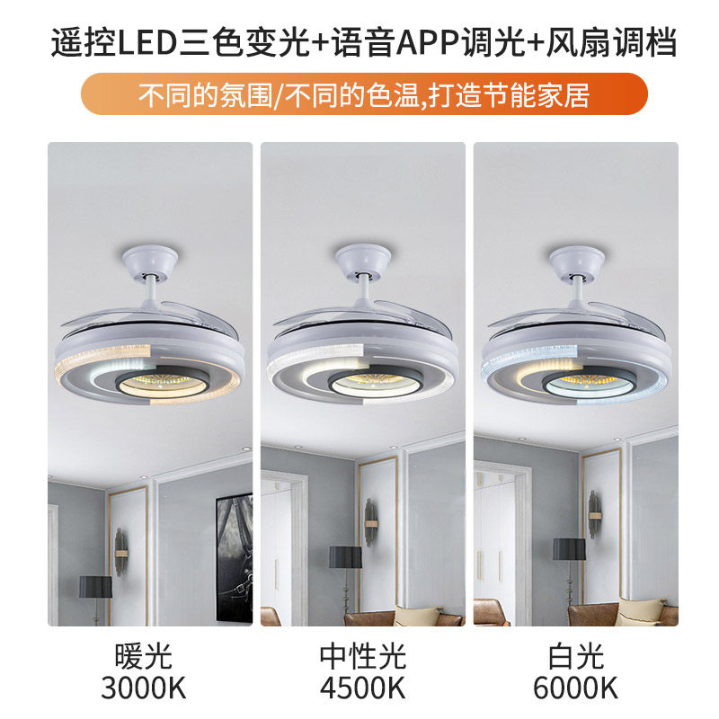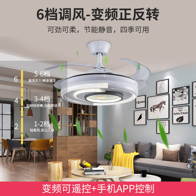 New modern light and luxurious ceiling fan light invisible ceiling fan light dining room Living room bedroom mute creative minimalist electric fan chandelia