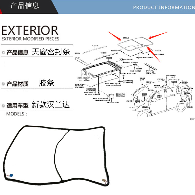 15-18 Highlander panoramic sunroof glass sealing strip sealing ring rubber strip sealing strip dustproof and waterproof original factory