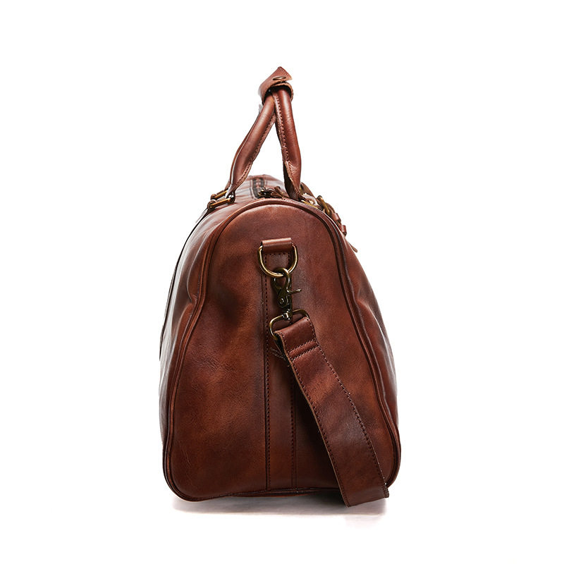Retro Large Capacity Genuine Leather Travel Bag Men's Hand Single Shoulder Inclined Satchel Bag With Tannic Leather Business Trip Luggage Bag