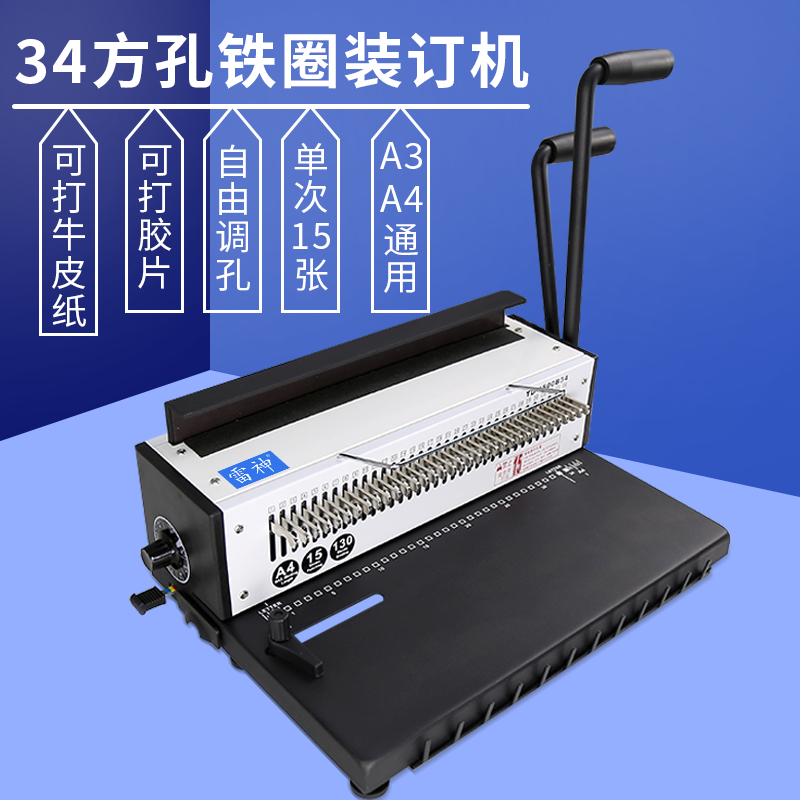 Iron ring binding machine 8-inch A5 desk calendar calendar punching pressure ring binding machine double coil A3A4 file punching binding machine can draw a knife 34 holes YO ring recipe binding machine Rayson TD-1500B34