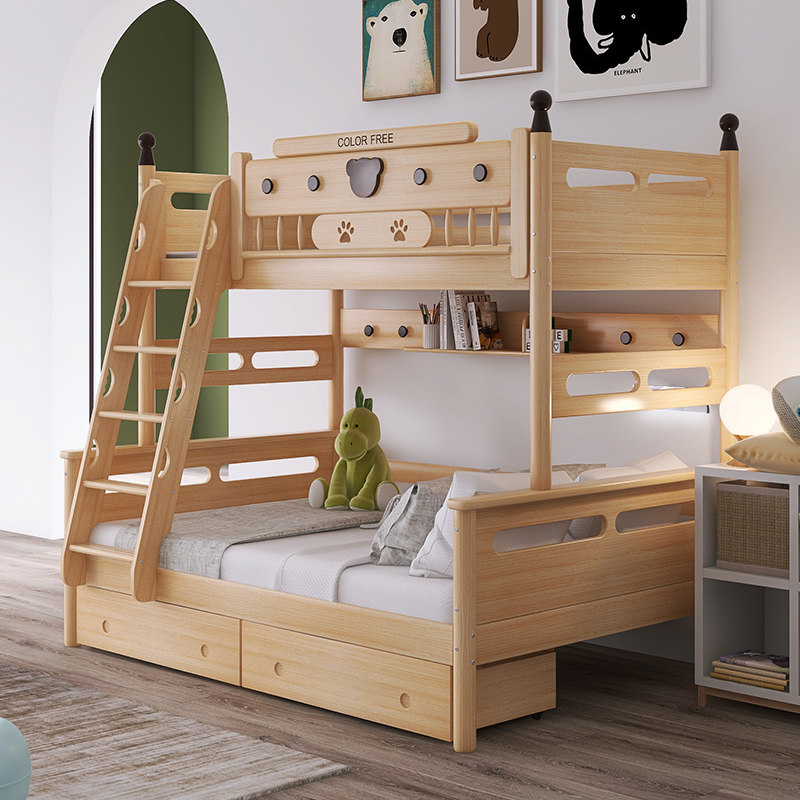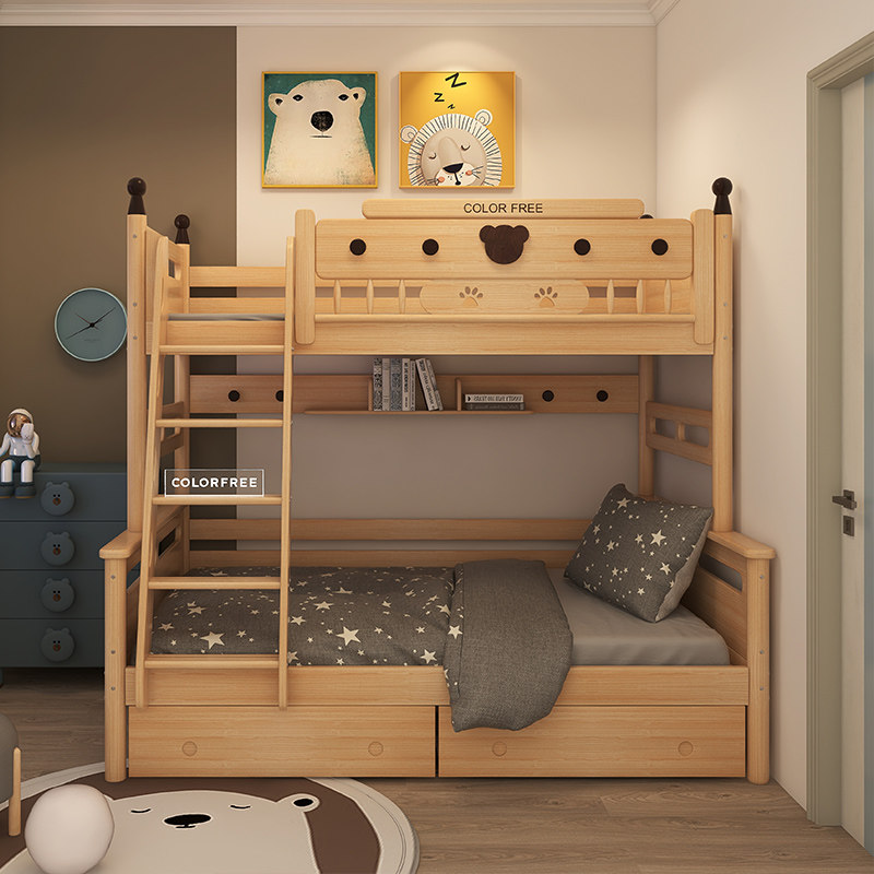 colorfree children's solid wood bed Nordic bunk men and women with bookshelf drawers multi-functional combination high and low bed