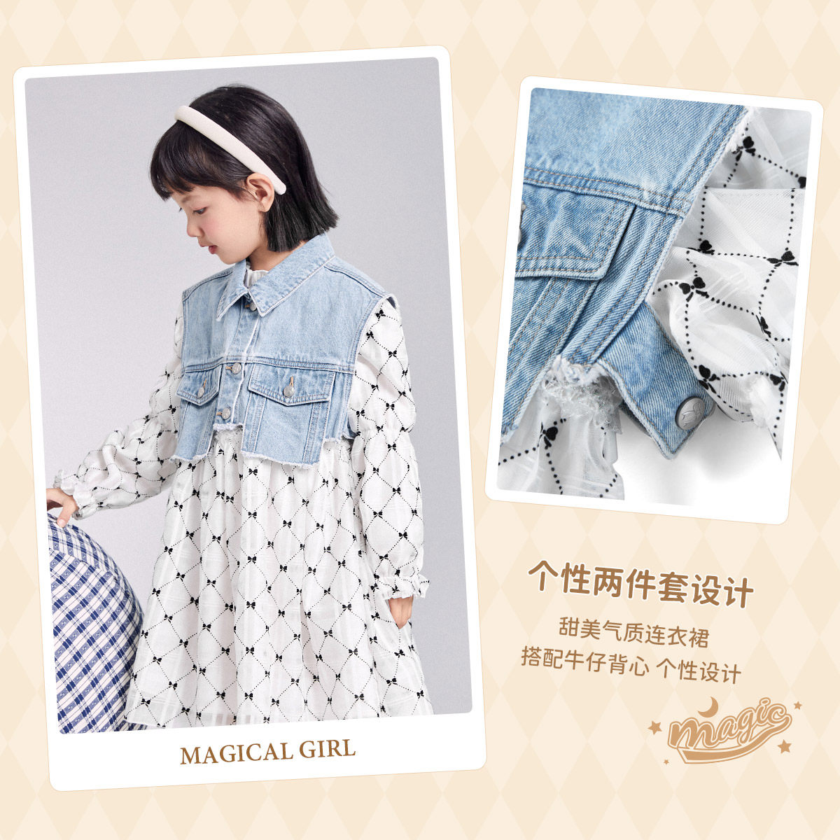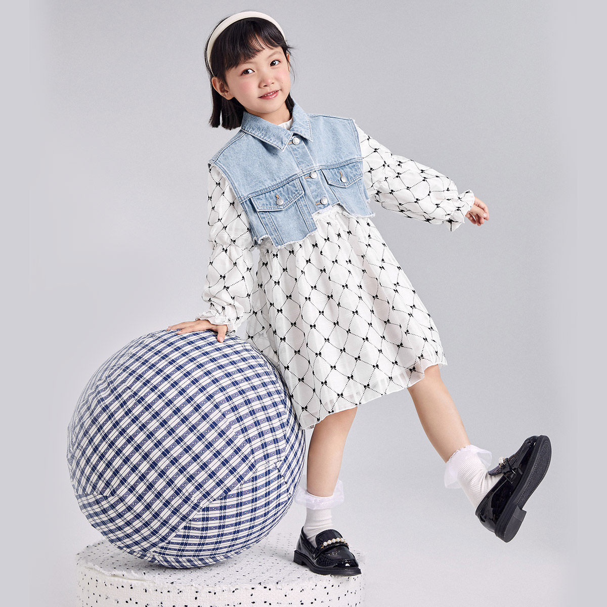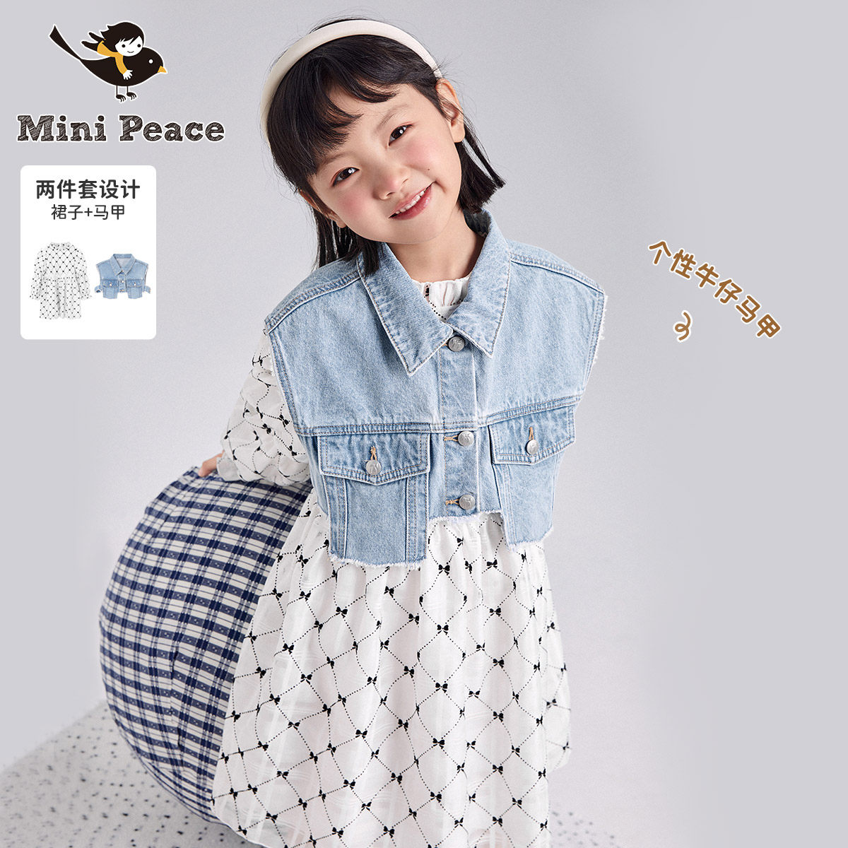 minipeace Taiping bird boy dress girl foreign dress Spring child denim Skirt Suit Princess Dress