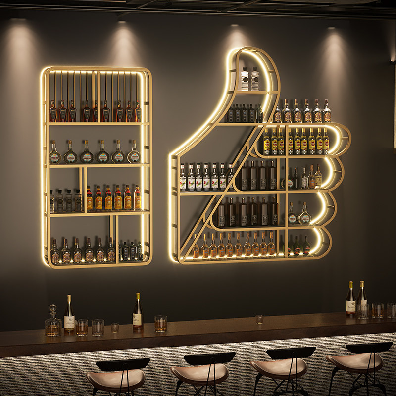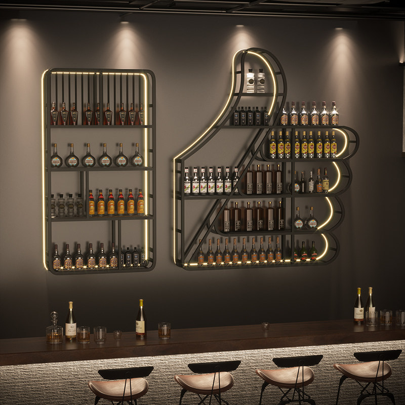 Bar bar counter wine cabinet wall-mounted creative wall wine display rack restaurant rack luminous wrought iron wine rack