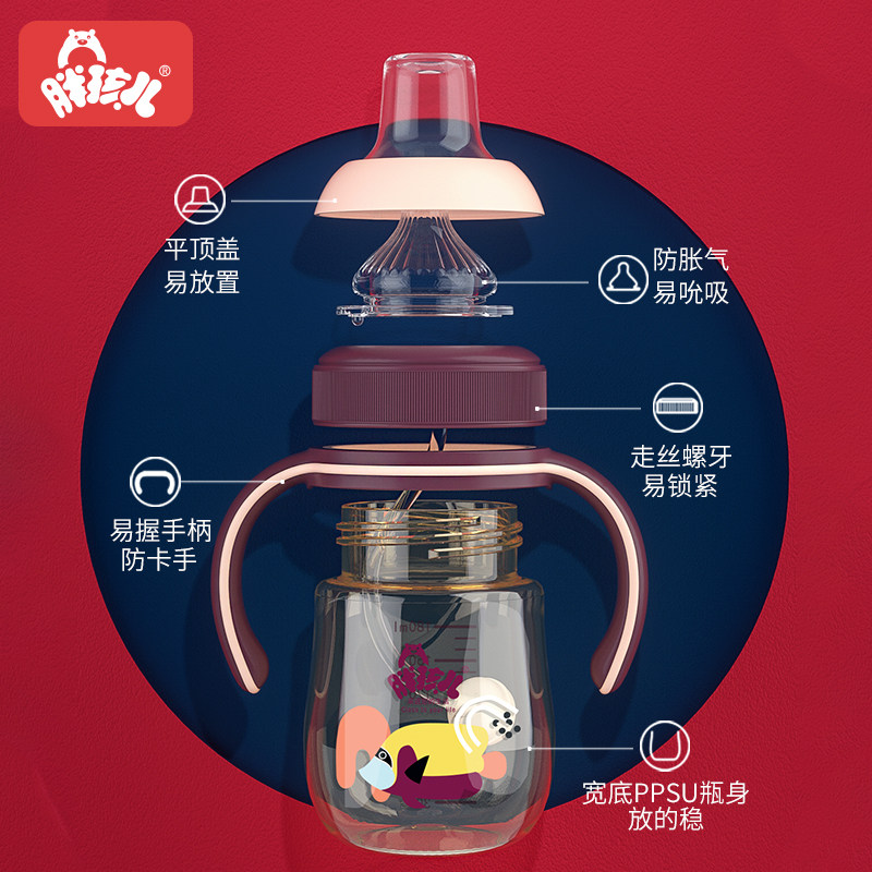 Fat kid big baby bottle 1-2-3 + years old anti-flatulter gas ppsu resistant brand 6-month straw bottle bottle