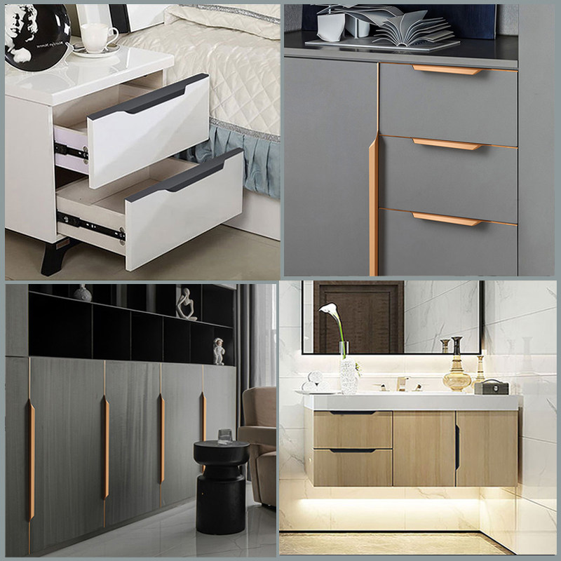 Invisible handle cabinet door modern minimalist edge-sealed clothing overall cabinet drawer dark handle black gold whole body lengthened door handle