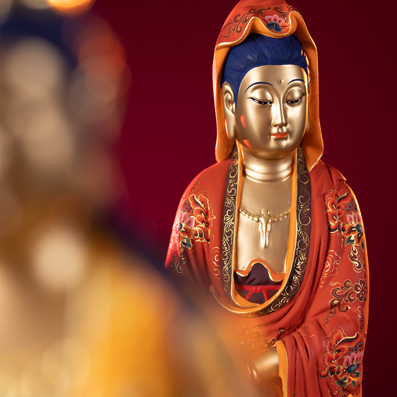 Zhu Bingren Tongwatu Haiguanyin to sit Guanyin at the mercy of the Buddha and the home decoration of the home decoration Bronze Sculpture Gift