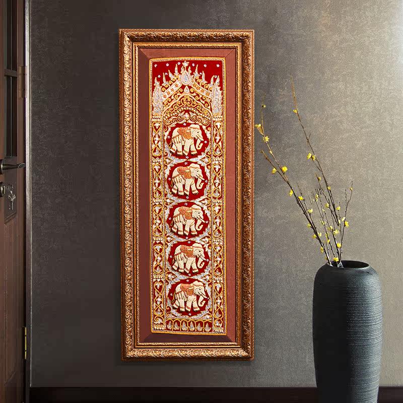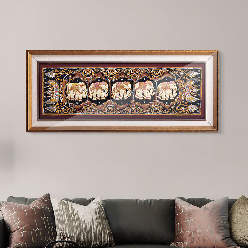 Tai Domain Southeast Asia Handmade Pearl Embroidery Jielephant Living Room Sofa Background Wall Decoration Painting Thai Genguan Corridor Hang Painting