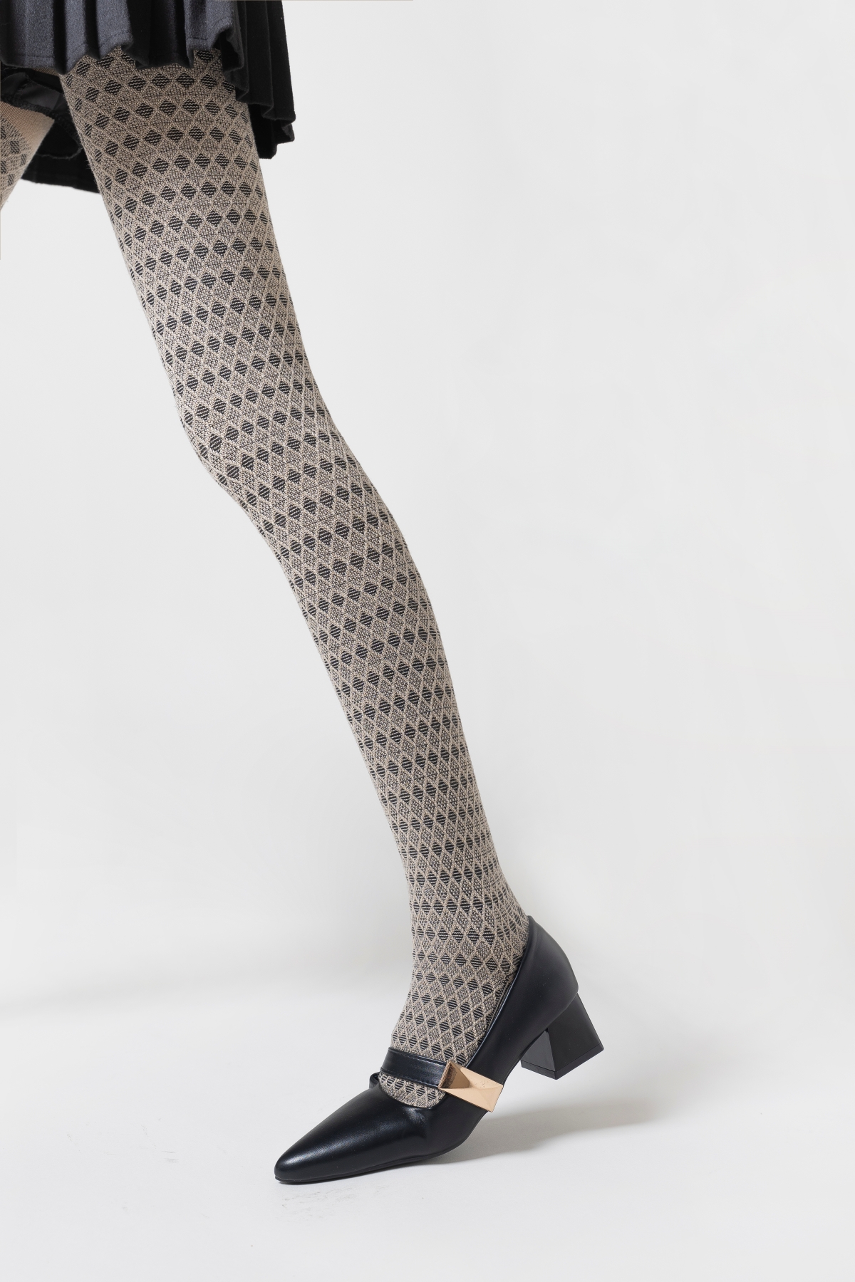 Small fragrant wind Japan rhomboid Giktori Bumping Color Knit Jacquard Pantyhose High End Beating Bottom Pants Socks Elegant Gge-Taobao