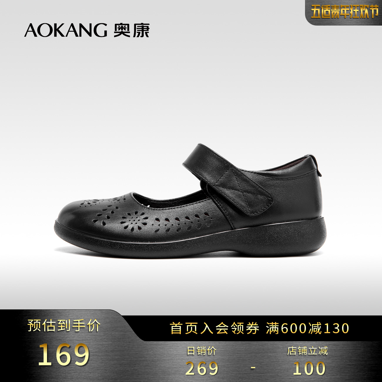 Okang women's shoes spring and summer leather simple middle and elderly mom shoes hollow breathable floor comfortable woman shoes