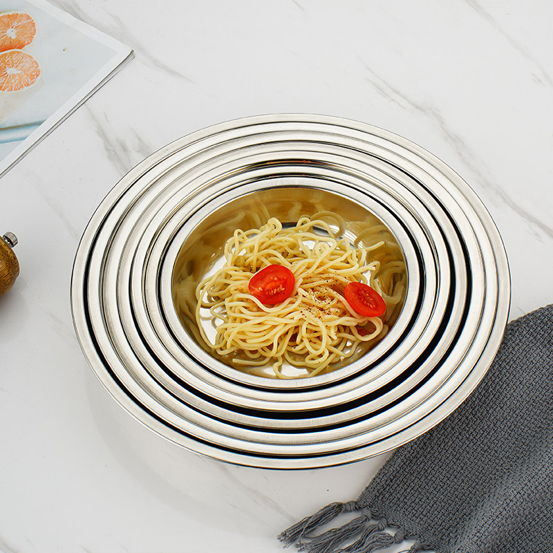 Stainless Steel Disc Thickened Light Disc Nursery Dishes Dish Flat Bottom Disc Cold Leather Dish Dining Room Dinner Plate Barbecue Fish Pan