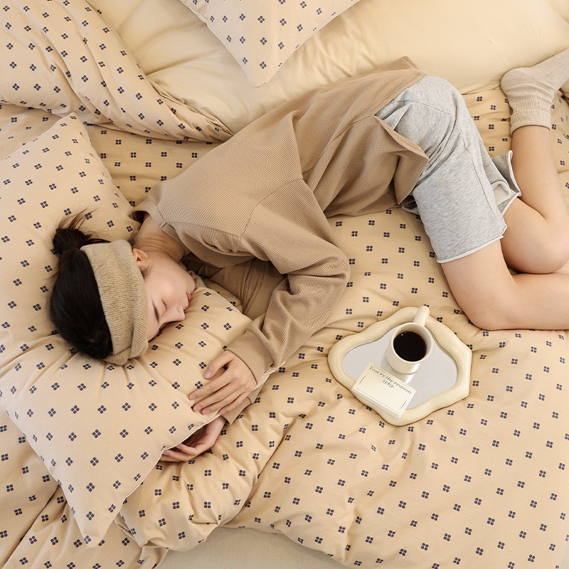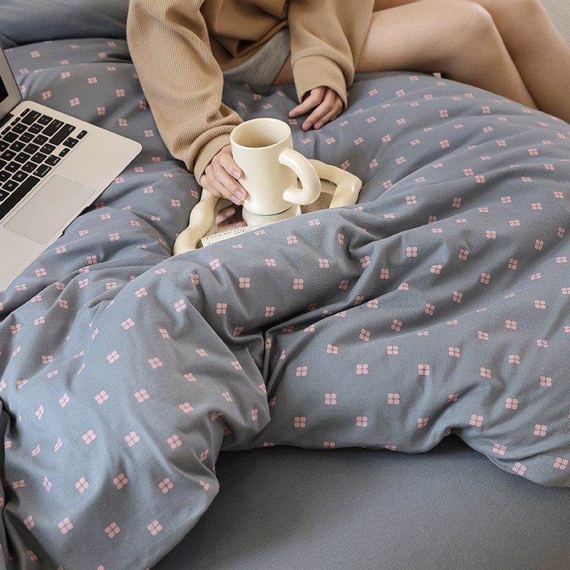 Ultra soft A type of geranium cotton four pieces sets 100 full cotton pure cotton knit quilt cover nude bed linen bed Hat Bedding