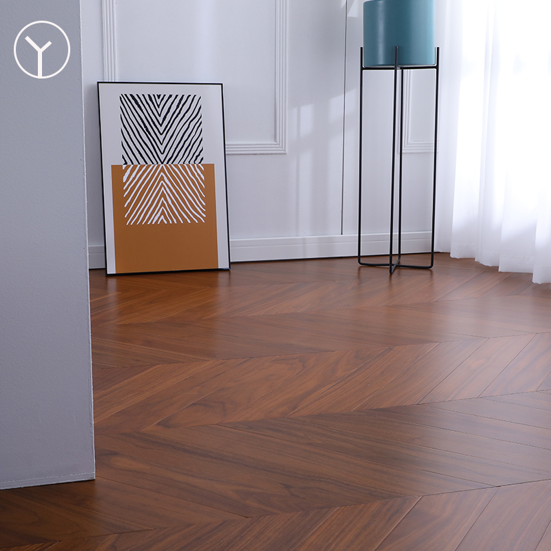 Black walnut art combined with herringbone fish bone combined with three layers of solid wood oak light luxury log floor heating personalized wooden floor 15mm